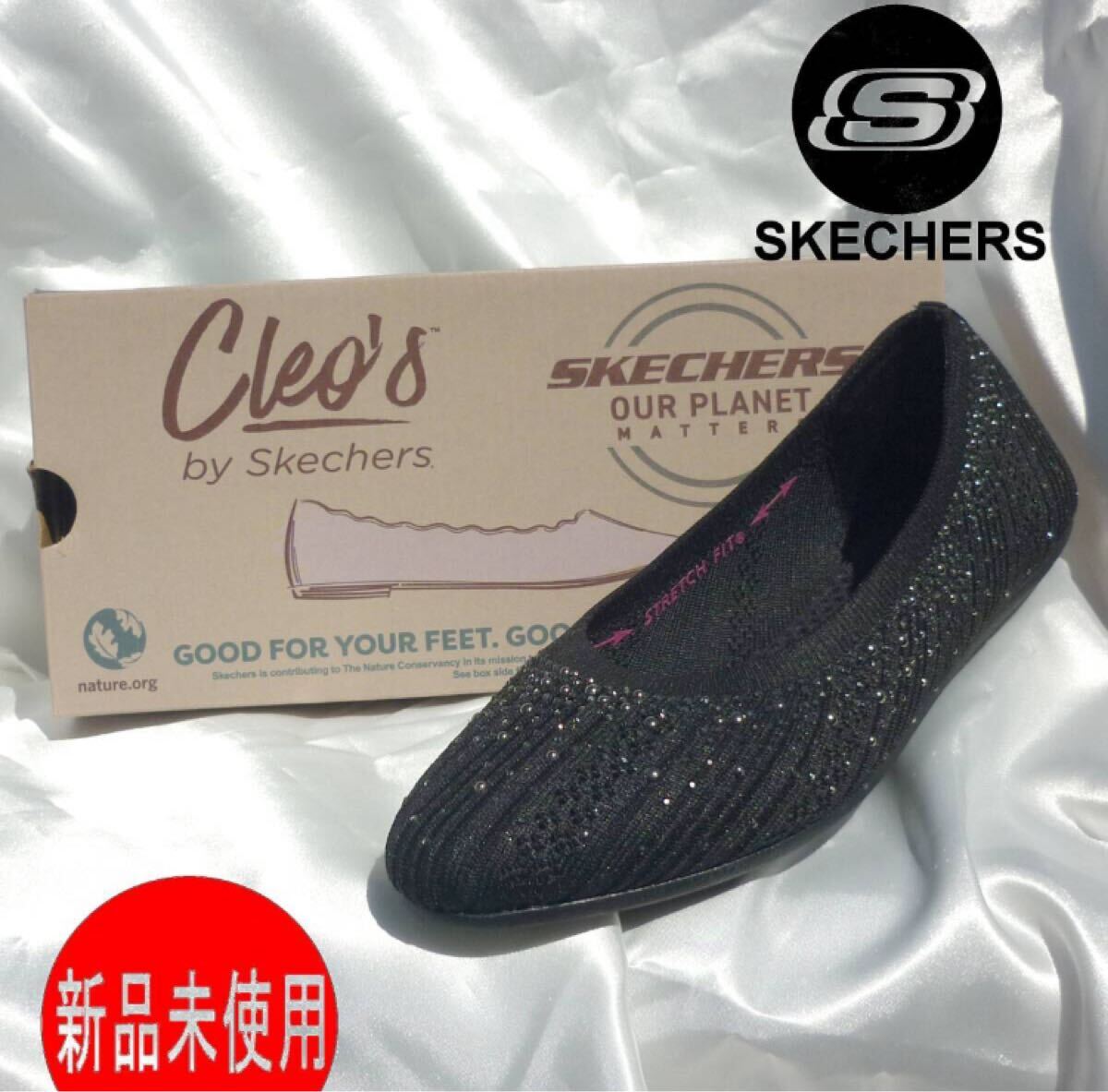> 新品23cm(22.5cm相当)スケッチャーズ ★CLEO 2.0-GLITZY ラインストーン黒2E パンプス フラットシューズ