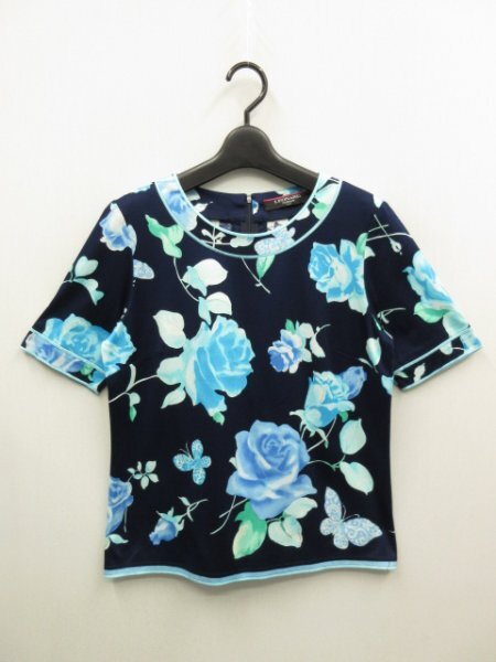 - レオナール LEONARD ★ 洗えるコットン ロゴ 花柄フラワー プリント 半袖 トップス ★ サイズM 国内正規品