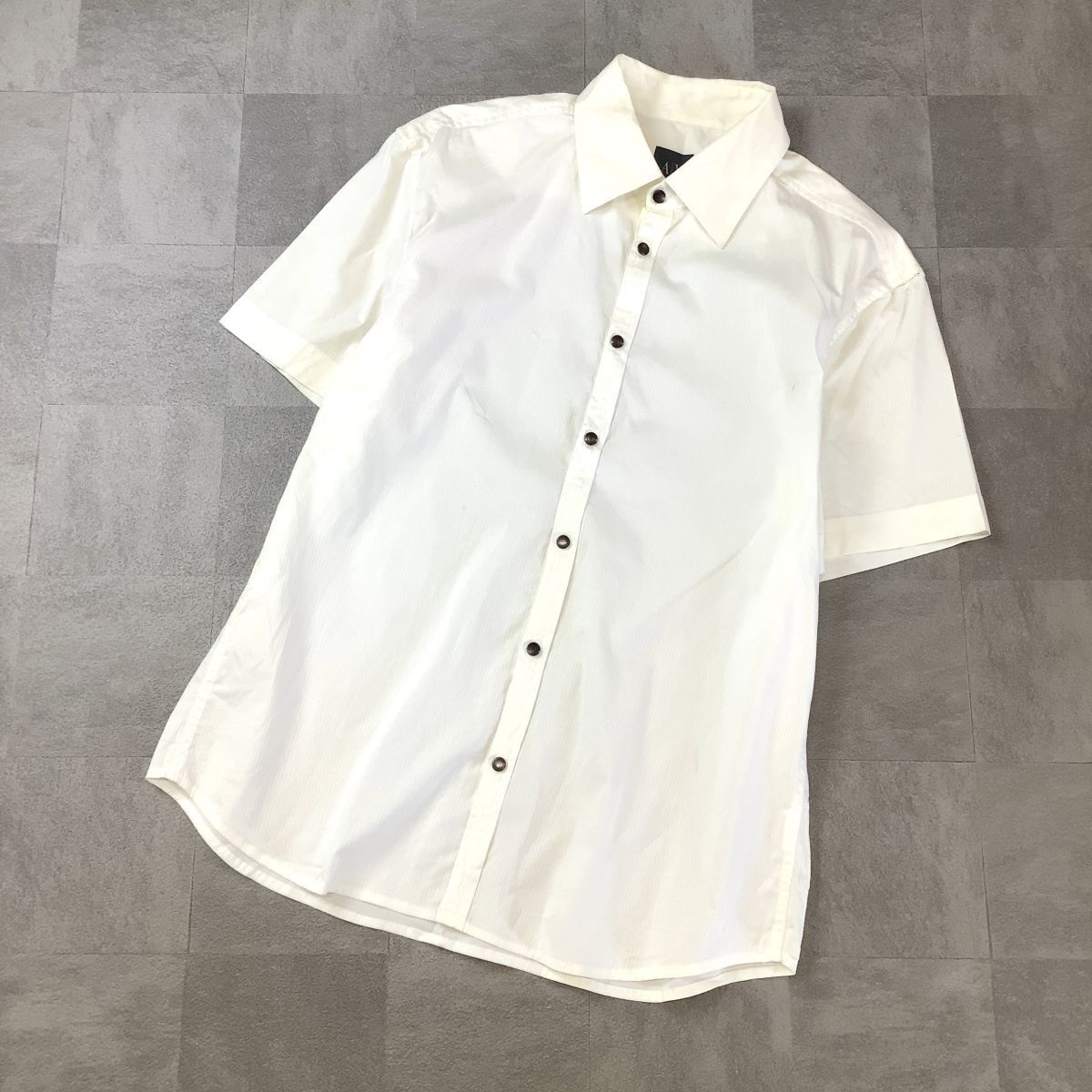 > ARMANI Exchange AX アルマーニエクスチェンジ ストライプ 半袖シャツ メンズ Lサイズ ホワイト