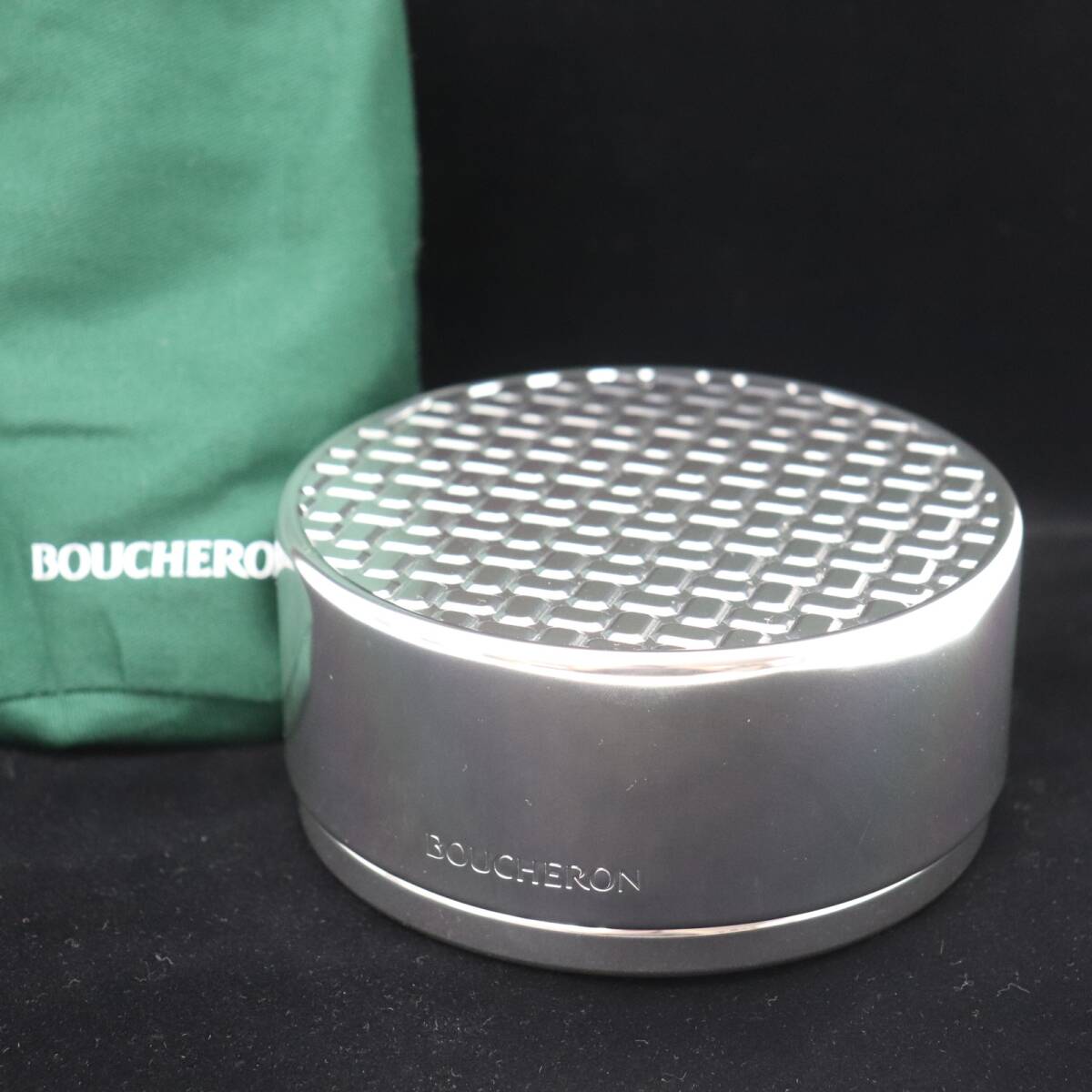 - ITB28T2VCPLH 即決 本物 美品 BOUCHERON ブシュロン アルミ ジュエリー ボックス ケース シルバー 小物入れ 保存袋 グリーン