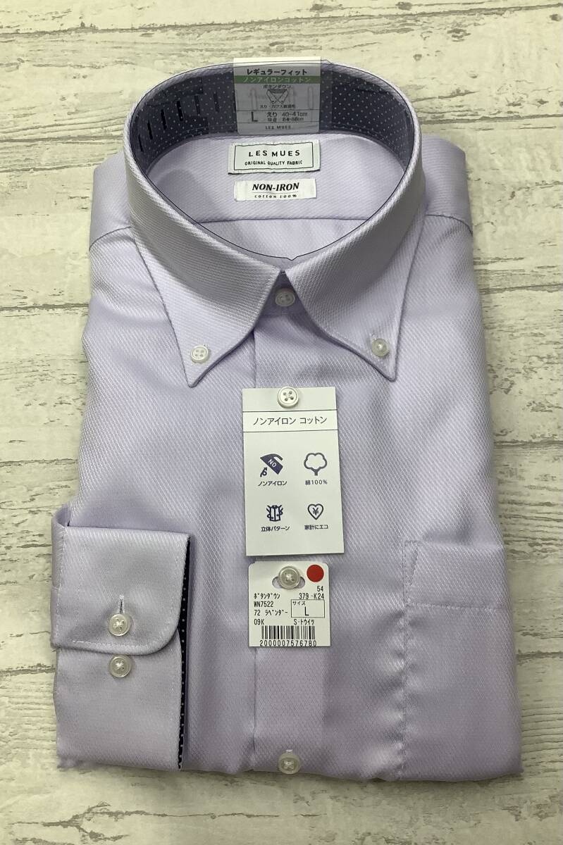 - 新品未使用 ★カッターシャツ★41-86長袖Lサイズ ノンアイロンコットン 綿100% ボタンダウン ラベンダー色