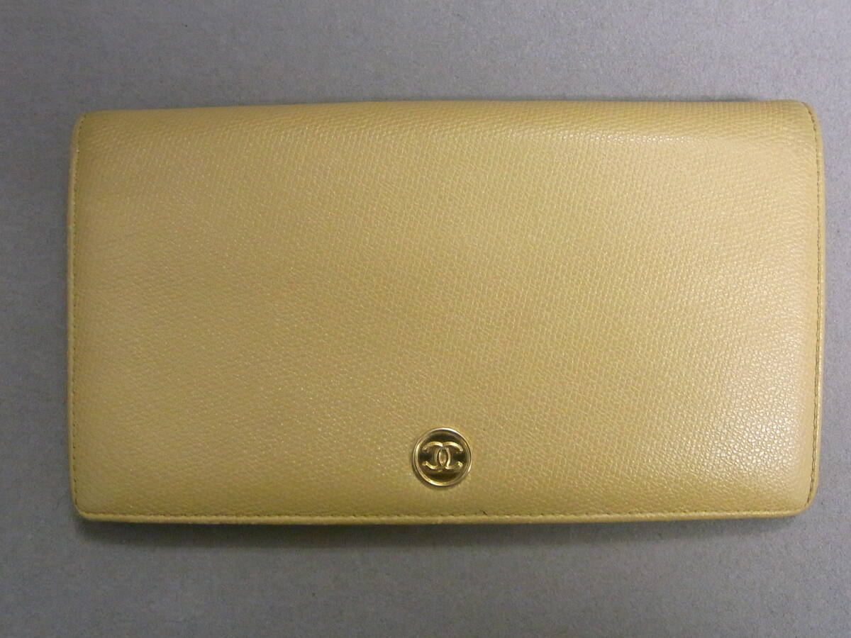 > 【中古品:状態「悪い」】シャネル/CHANEL 長財布 ココボタン カード入れ8個 小銭入れ付き カラー:薄茶色系