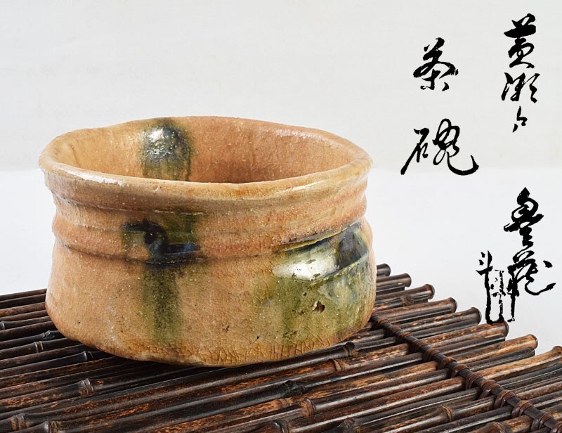 - 茶道具 人間国宝 荒川豊蔵作 黄瀬戸 茶碗 仕覆付 人間国宝 加藤卓男識箱 MLEF