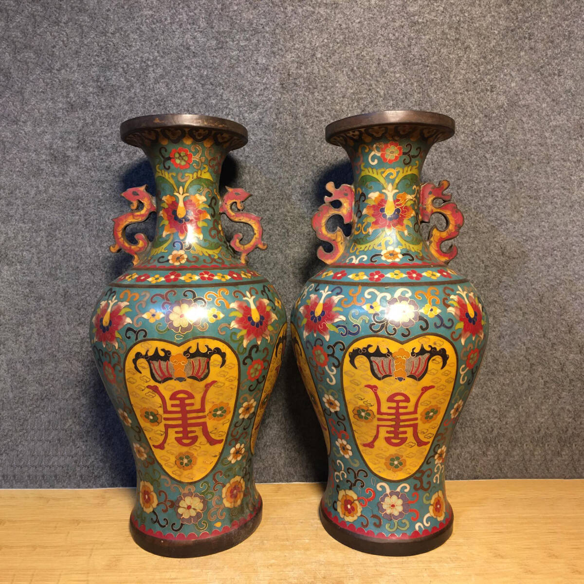 - 8+GV2523「東洋美術」人間国宝 中国骨董 銅製品【七宝銅地七宝花瓶】 旧物 珍品 精美 收藏品 中国の古い美術