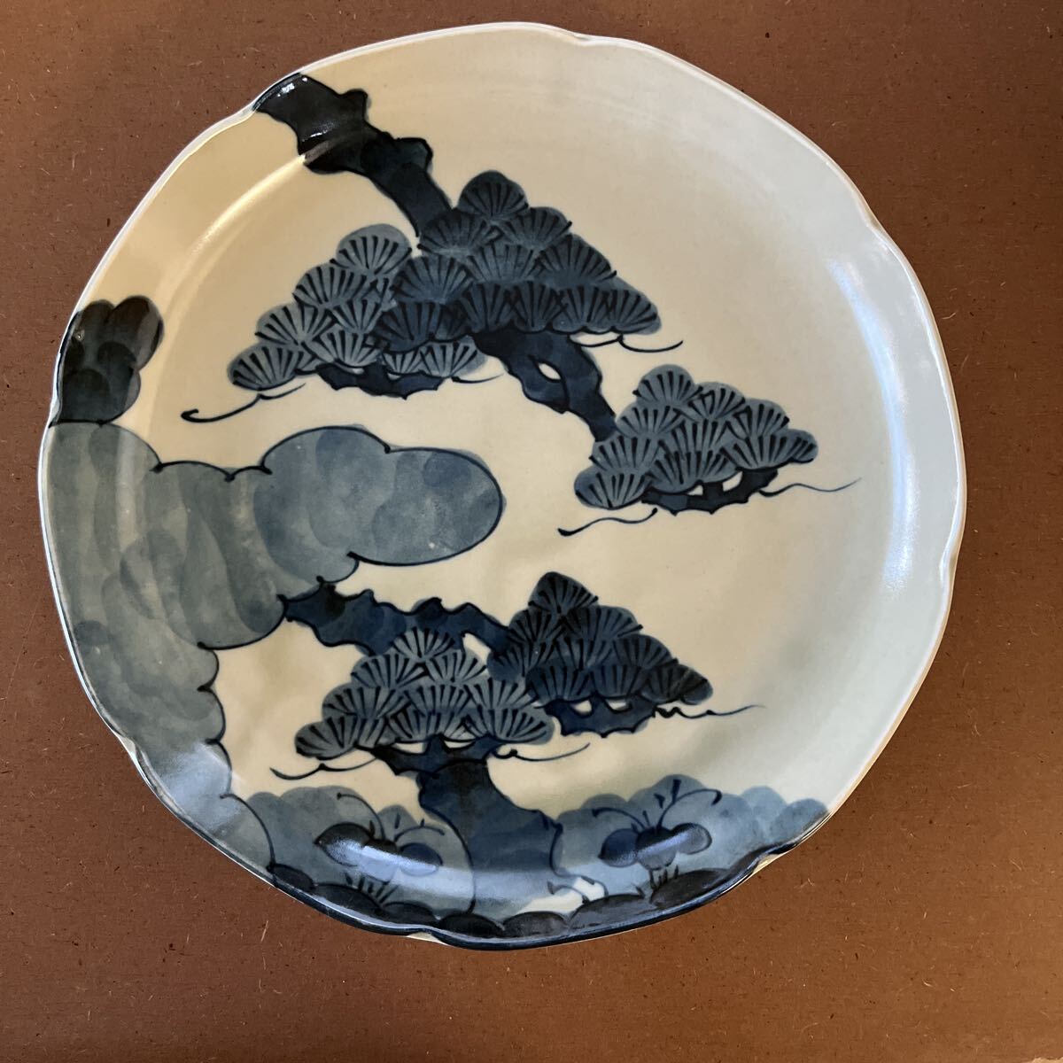- レトロ アンティーク 和食器 皿 松の絵柄 年代物 直径22cm
