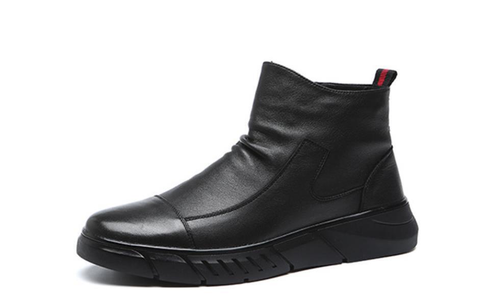 > 送料無料 匿名 メンズ バイク ライディング ブーツ 革靴 ショートブーツ チャッカブーツ 26.5cm ブラック