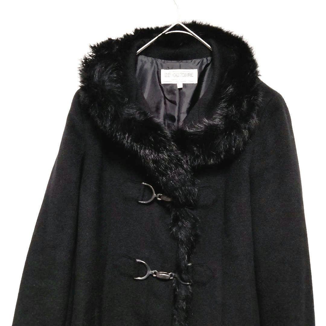 - 東京スタイル アンゴラ混 ラビットファー ファイアーマン ロングコート ブラック