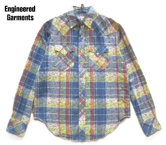 - 美品アメリカ製!!エンジニアドガーメンツ ENGINEERED GARMENTS*花柄・チェック柄 ウエスタンシャツ S 紺×緑×赤×淡いピンク NEPENTHES