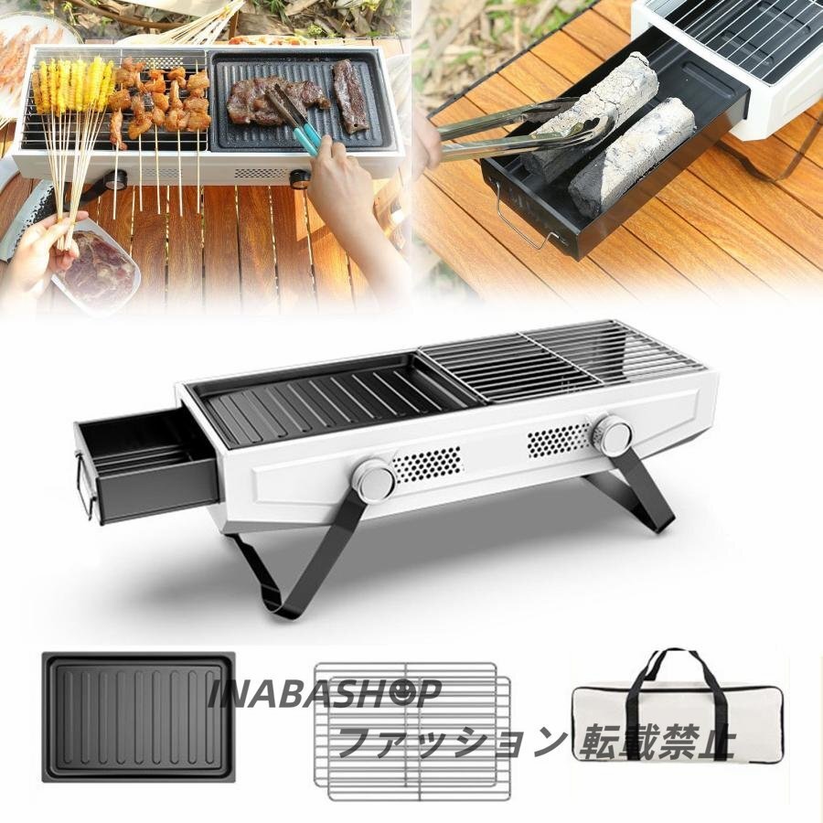 - バーベキュー コンロ キャンプ bbqグリル 卓上炉端グリル コンパクト キャンプ 炭 焚き火台 3~7人 鉄板付き 網付き 持ち運び チャコールグ