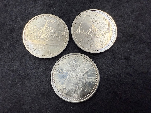 - 34、記念硬貨 長野オリンピック 500円 白銅貨 3種 スノボ・ボブスレー・フリー