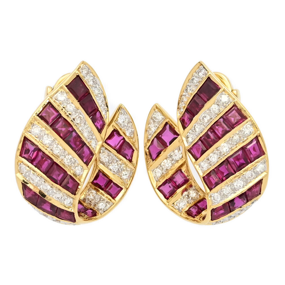 > RU1.27ct/FD:0.6ct/2way 7月誕生石・ルビー・ダイヤモンド ピアス・イヤリング/K18Y+W/750 2カラー-13.9g/プレゼント/記念日■587769