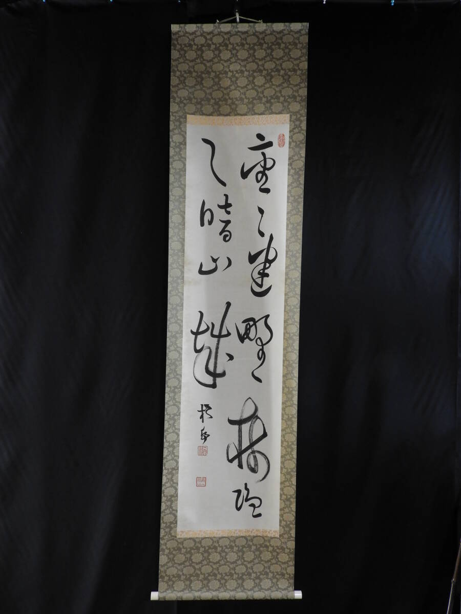 - 真作 中林梧竹 (二行書) 読み有り 紙本 合せ箱 掛軸 真筆保証 肉筆保証 骨董 絵画 書 古物