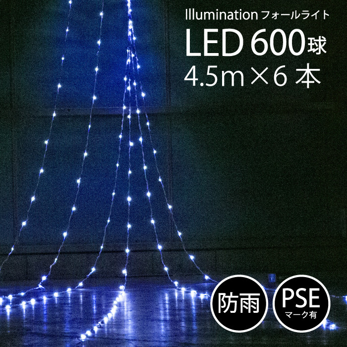 - 【ブルー】 イルミネーション 屋外用 LED フォール 600球 カーテン フォール ナイアガラ FJ3957-blue