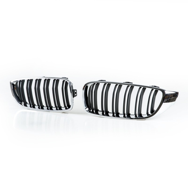 > BMW用 4シリーズ F33 F32 F36 F82 M4 F80 M3用 M4スタイル クロームメッキ×ブラック ダブルリブフロントグリル