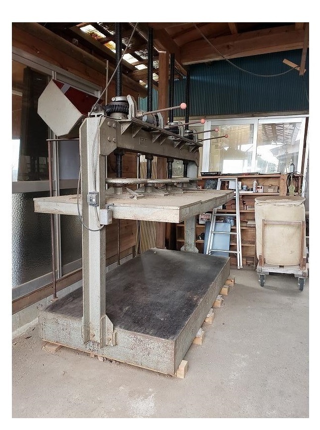 - C3A【棚石イ玉木040424-20】プレス電動 1.2×2.4m 4×8尺 横井工業 4枚割り 200V 木工
