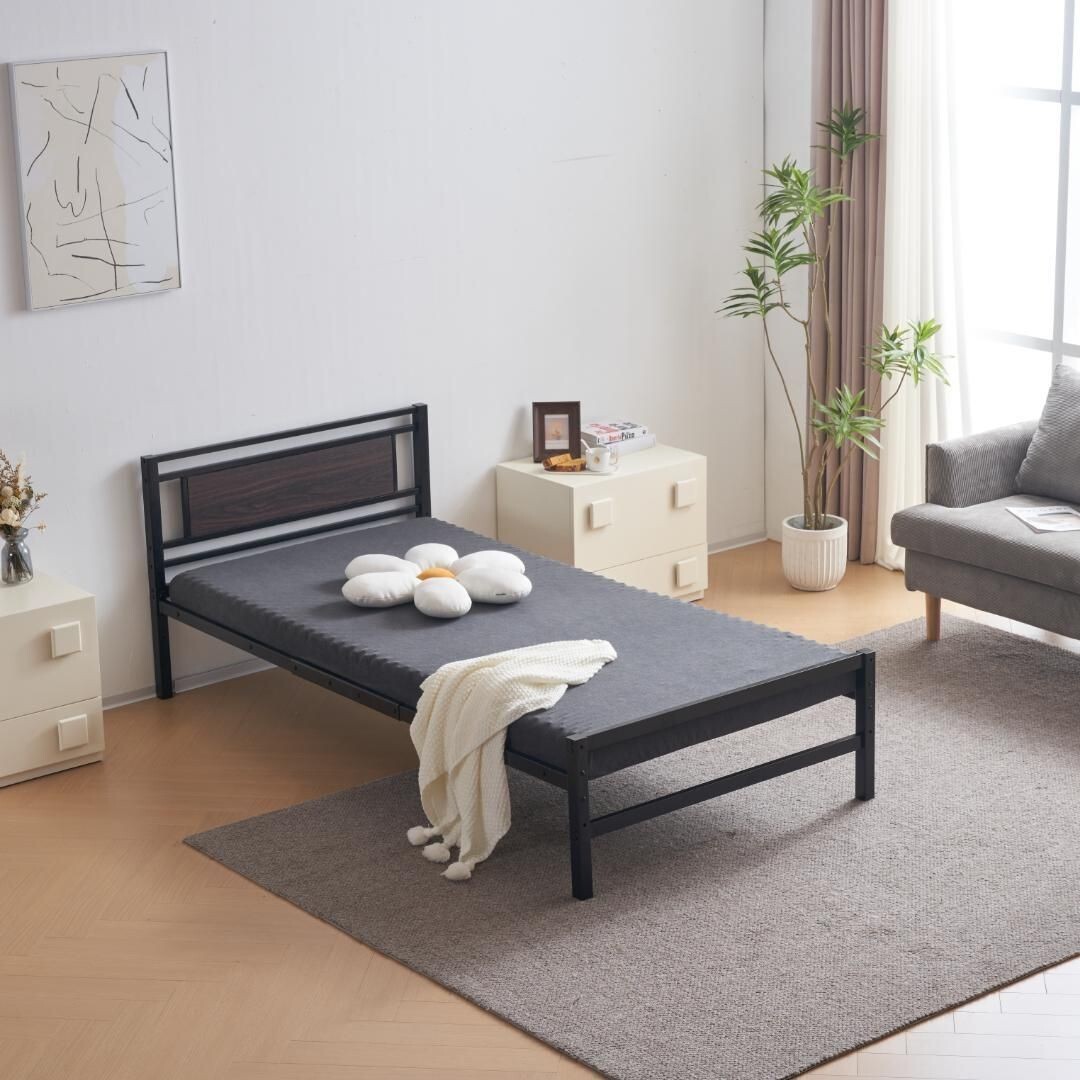 - 【ブラック】パイプベッド シングル ベッド 宮 三段階高さ調整可 スチール 耐震 558086