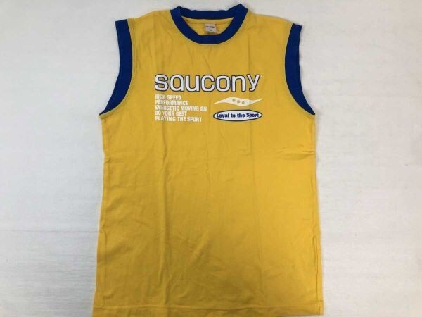 > saucony サッカニー キッズ キッズコア 00’s Y2K 平成 ストリート ビッグロゴ ノースリーブ リンガー タンクトップ 男の子 160 黄色