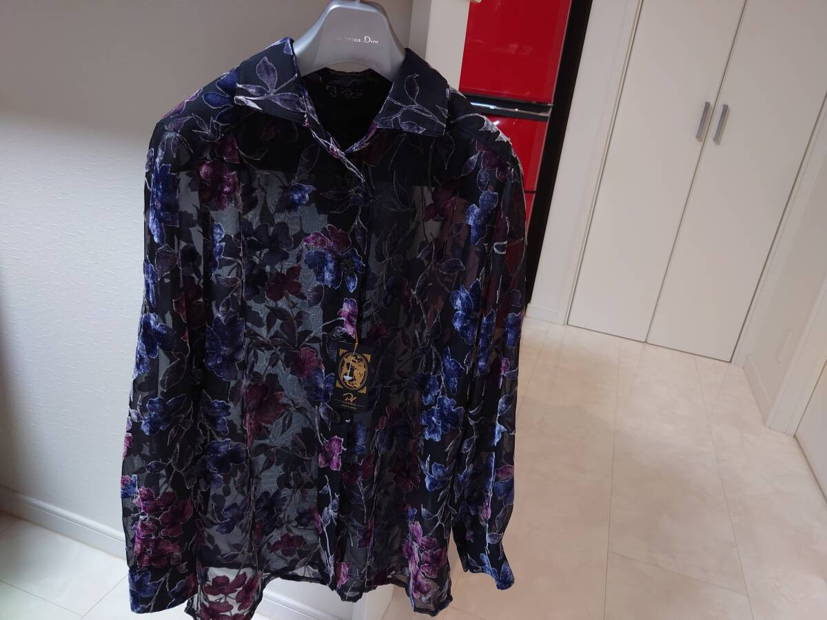 - 定価2万 花柄 シアー シャツ ブラウス シースルー M ブラック