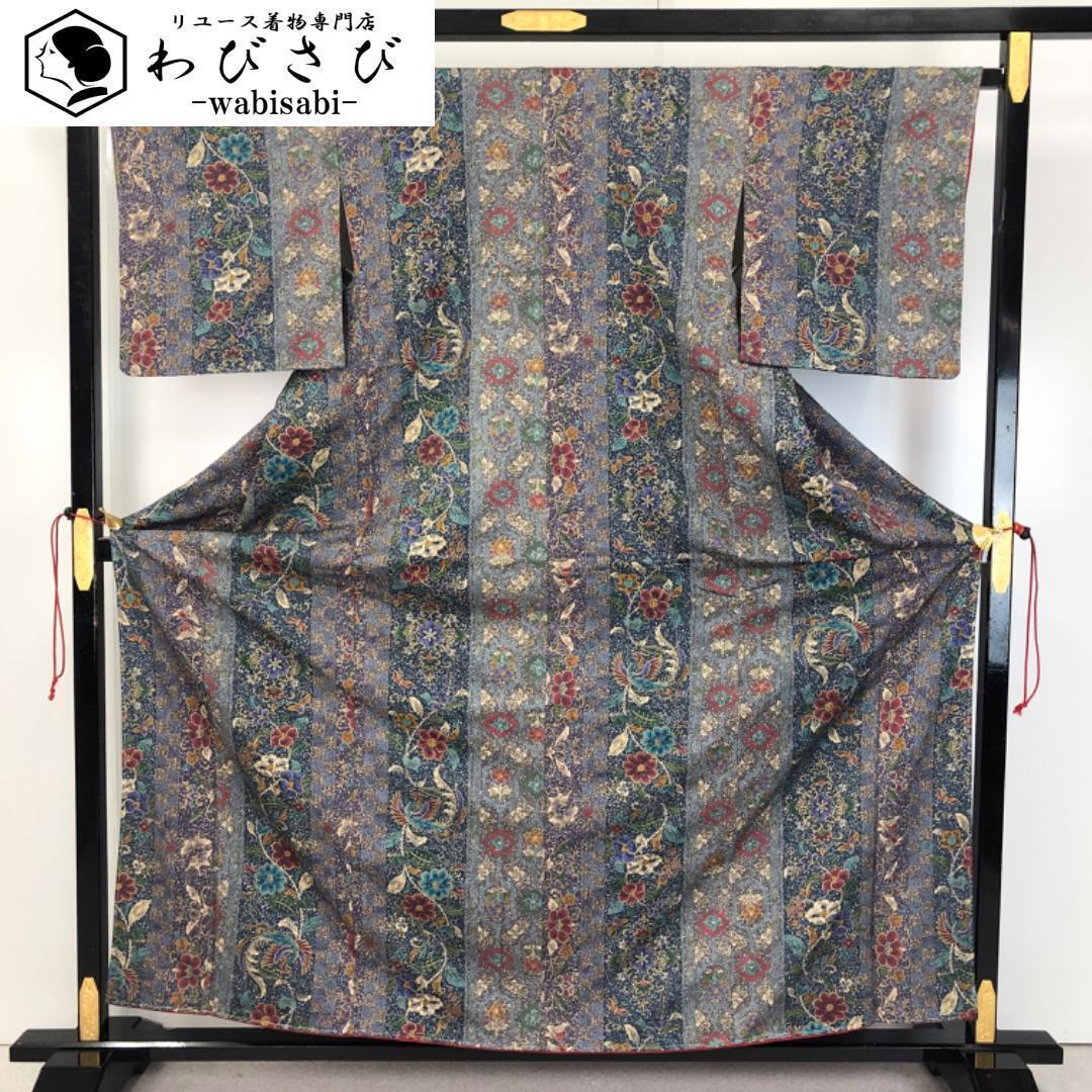 - 小紋 鳳凰 花唐草模様 金彩 叩き染 しつけ糸 K-5219 着物 きもの kimono 和服 和装 中古 リサイクル着物 【送料無料】