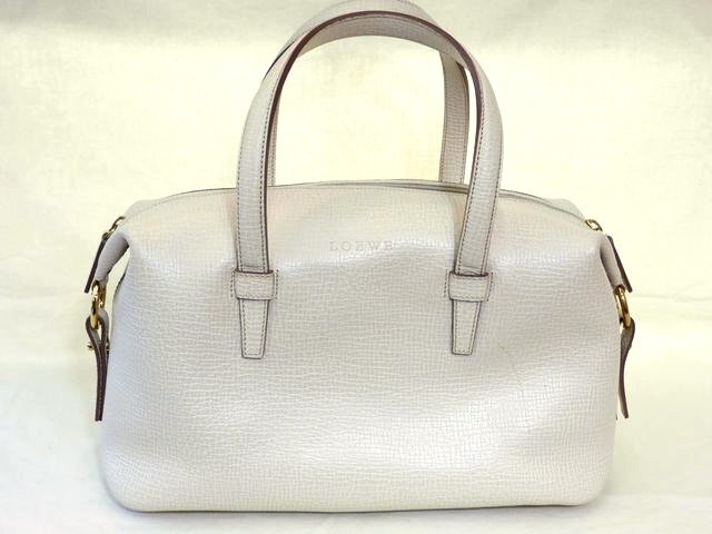 > ロエベ ミニ ボストンバッグ ■ 無地 アイボリー レザー ハンドバッグ レディース LOEWE □7D7HS