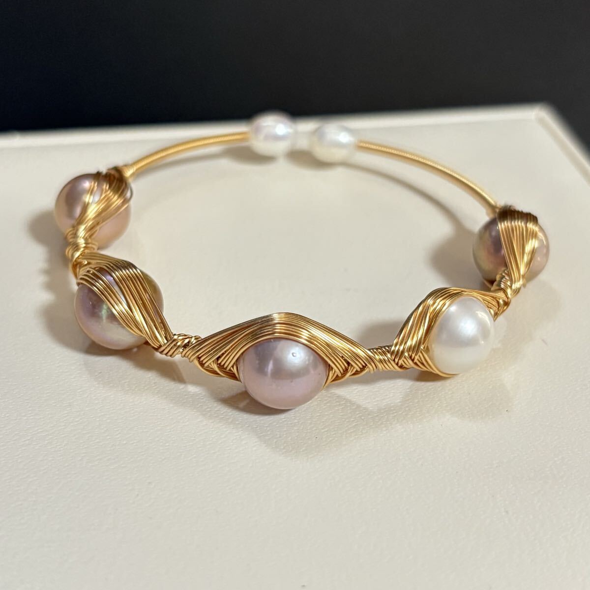 - V08 本真珠 エジソンパール ブレスレット バングル 天然