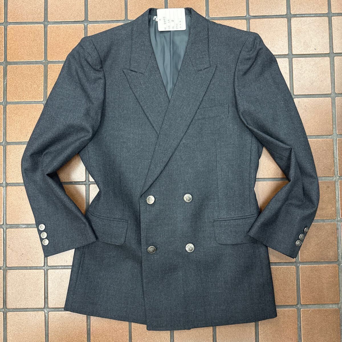 - 新品☆未使用【サイズA4 S★日本製ジャケット】4Bダブルジャケット グレー系 サイドベンツ ゴルフジャケット メタルボタン ブレザーメンズ
