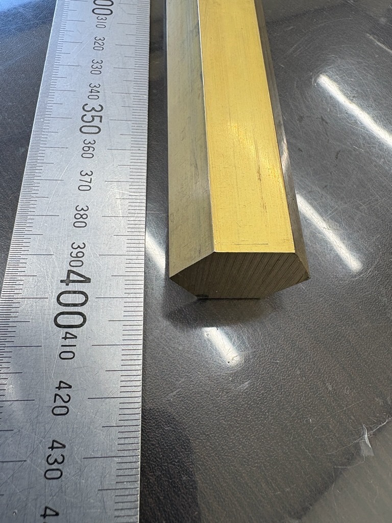 - 真鍮 六角棒 対辺25mm 長さ400mmくらい 重量約1.8kg 残材 端材