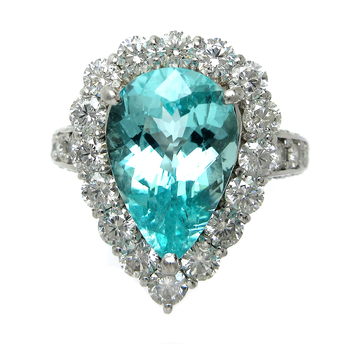 - 天然パライバトルマリン リング 3.67ct PT900 ダイヤ 1.85ct デザインリング 指輪 鑑別書 ペアーシェイプ パライバ