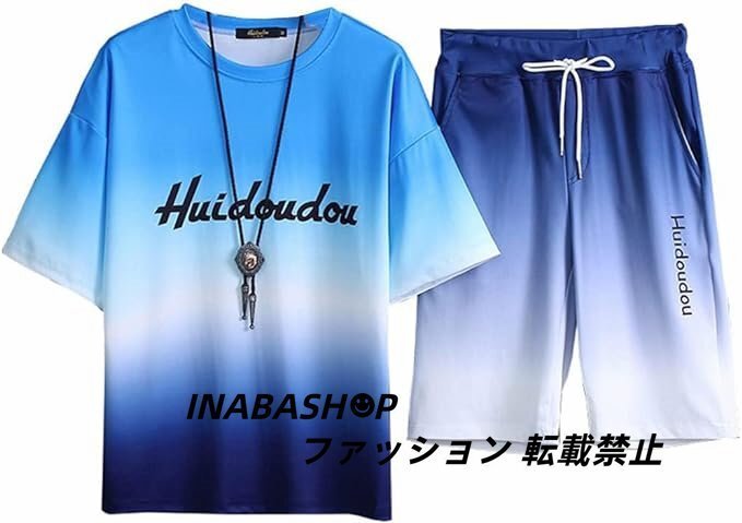 - 夏 ペアルック ジャージ上下セットアップ カップル 半袖パーカー メンズ レディーズ グラデーション Tシャツ スポーツ 韓国 大きいサイズ