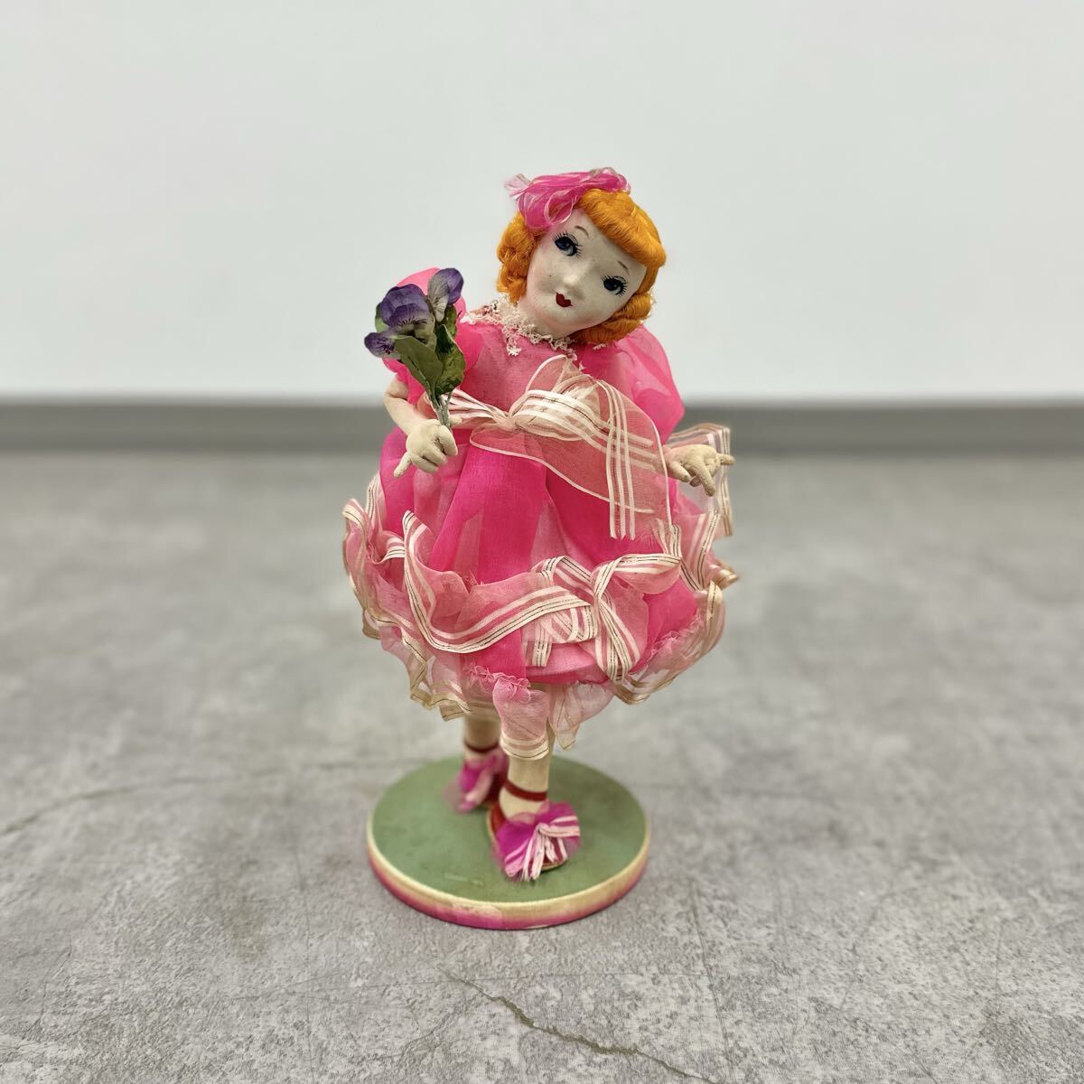 - SNT822 ピンク色リボン ポーズ人形 約28cm サクラ人形 昭和レトロ ヴィンテージドール ワンピース 置物 アンティーク レトロポップ