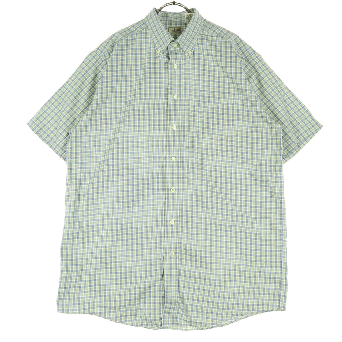 > 美品 L.L.Bean エルエルビーン チェック柄 半袖 チェックシャツ LG-TALL ブルー系 アウトドア メンズ