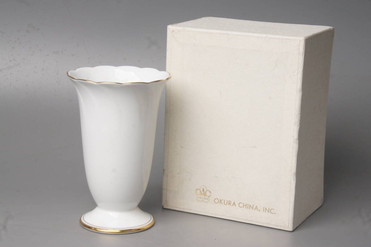 - 大倉陶園 白磁金彩花瓶 花入 高さ14㎝ 花瓶 フラワーベース 未使用箱入