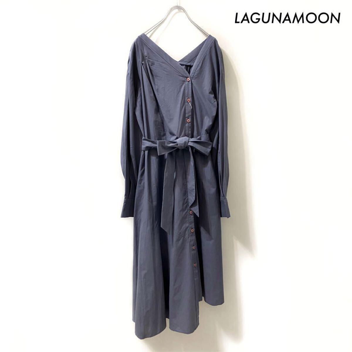 - 【送料無料】LAGUNAMOON ラグナムーン★アシンメトリーシャツワンピース ブルー 未使用品