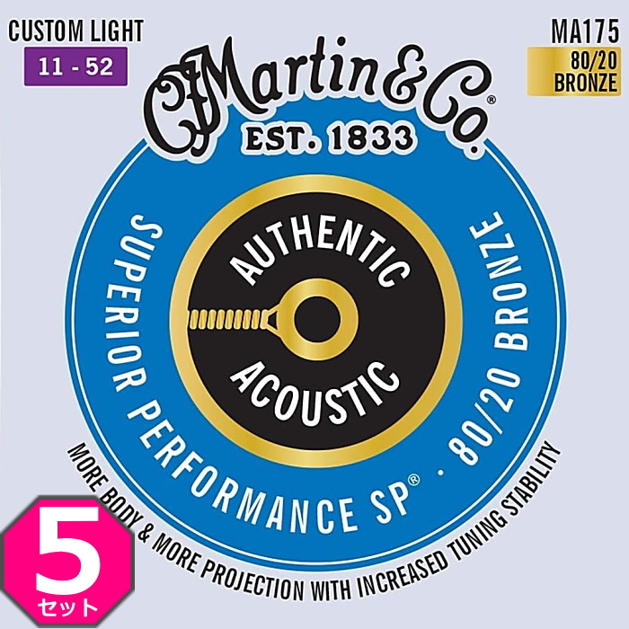 - 5セット Martin MA175 Superior Performance Custom Light 011-052 80/20 Bronze マーチン アコギ弦