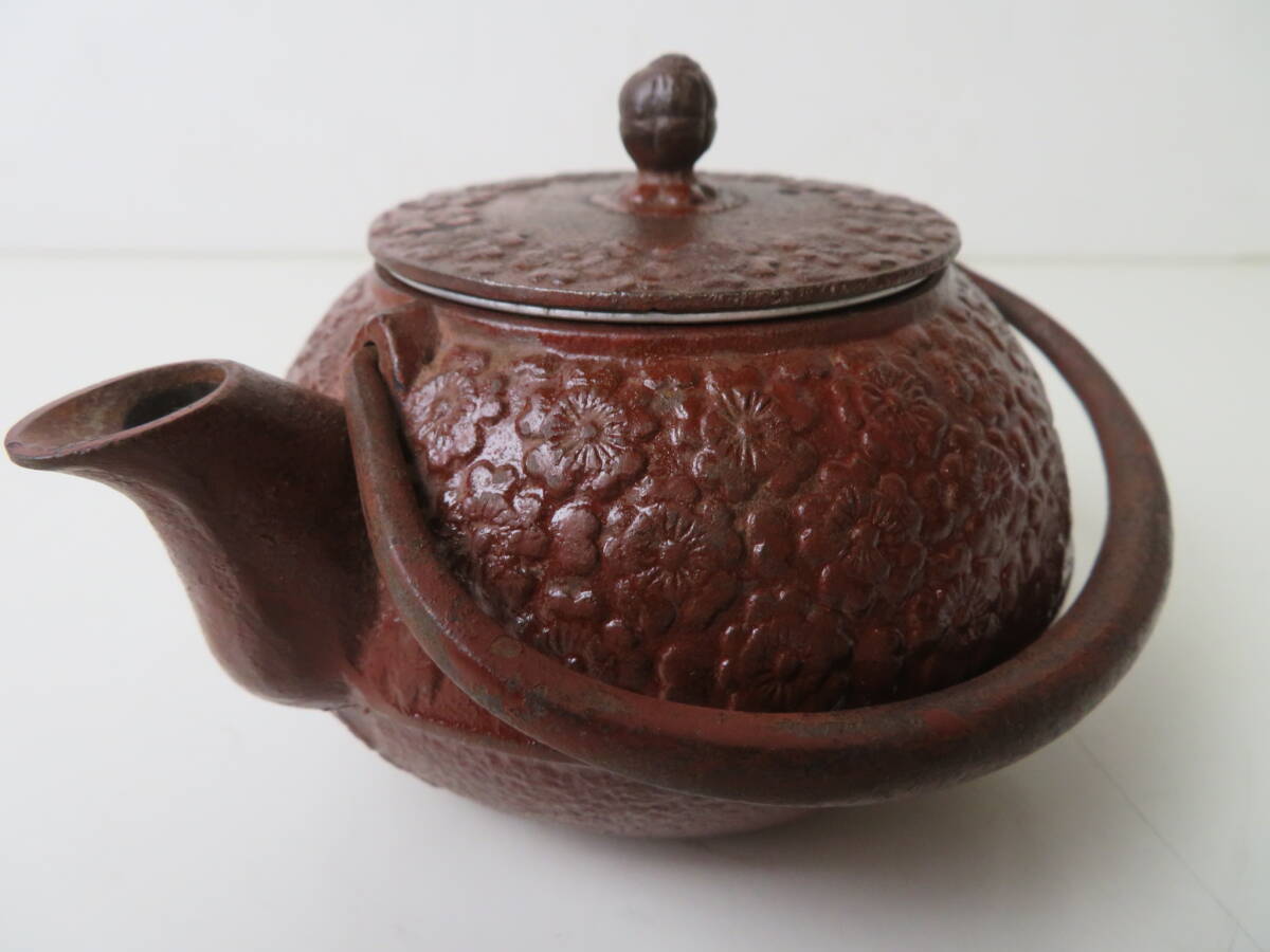 - ▽南部鉄器 南部鉄瓶 岩鋳 鉄瓶 急須 茶器 花柄 伝統工芸 茶こし付き