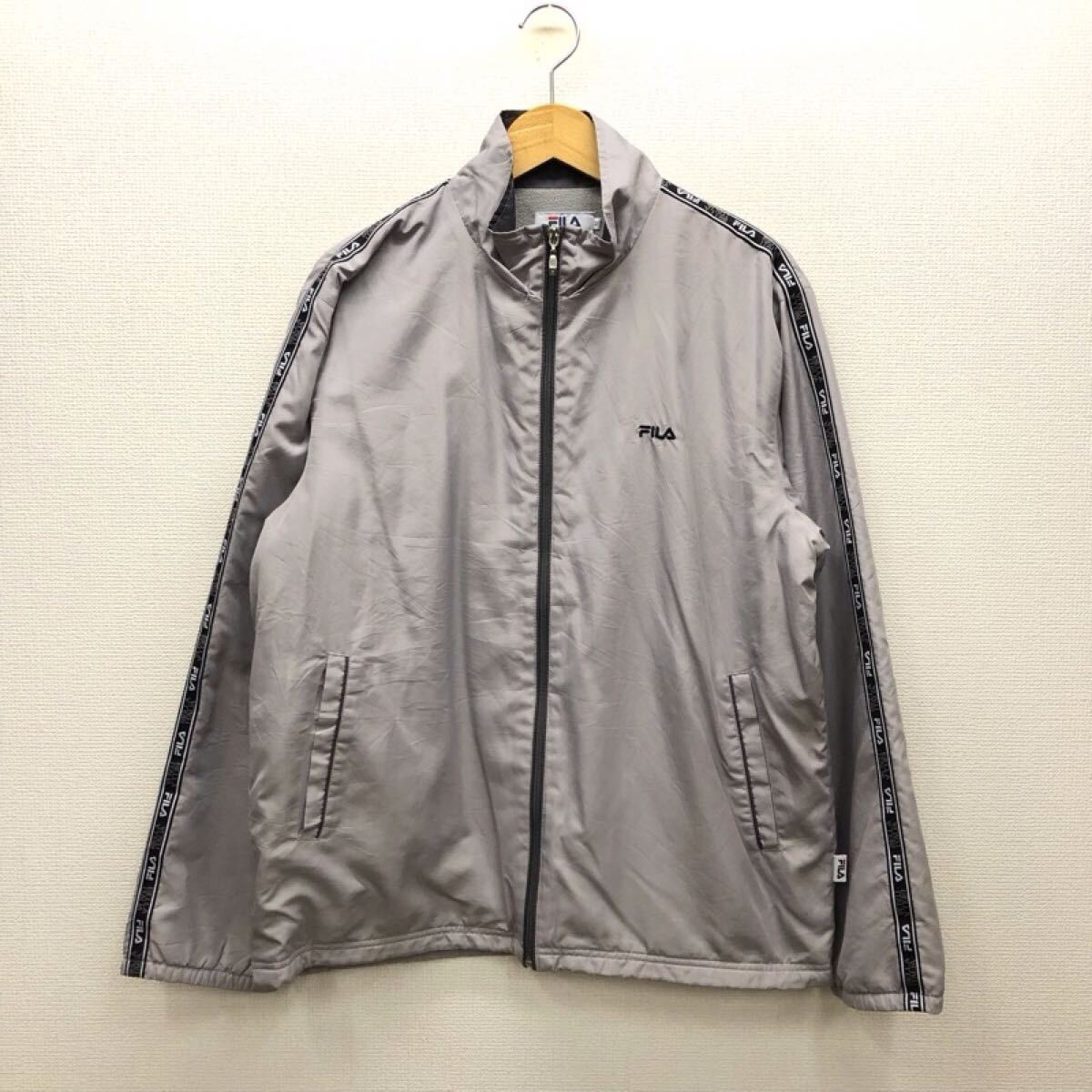 > 【GH543】FILA Mサイズ ウィンドブレーカー グレー 裏地フリース 袖中綿入り 左裾絞り付き ブランド古着 フィラ スポーツウェア 送料無料