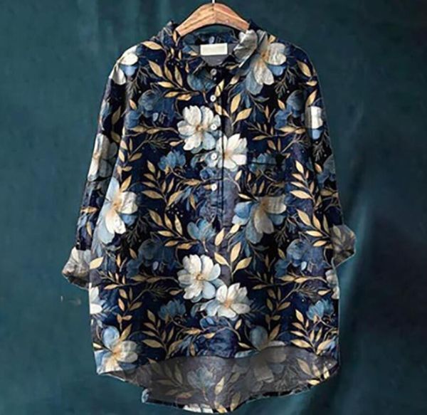 - 新入荷*秋新作 キレイめ チュニック シャツ ブラウス 長袖 トップス プリント柄 ゆったり 通勤 シャツ 大きいサイズ ロングシャツ * 柄8