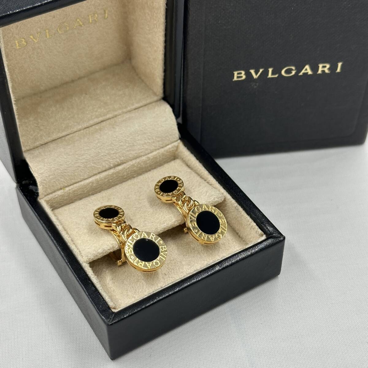 - 中古 送料無料 中古A ブルガリ ピアス BVLGARI ブルガリブルガリ オニキス 2P 750 YG K18 イエローゴールド 箱付き 146773