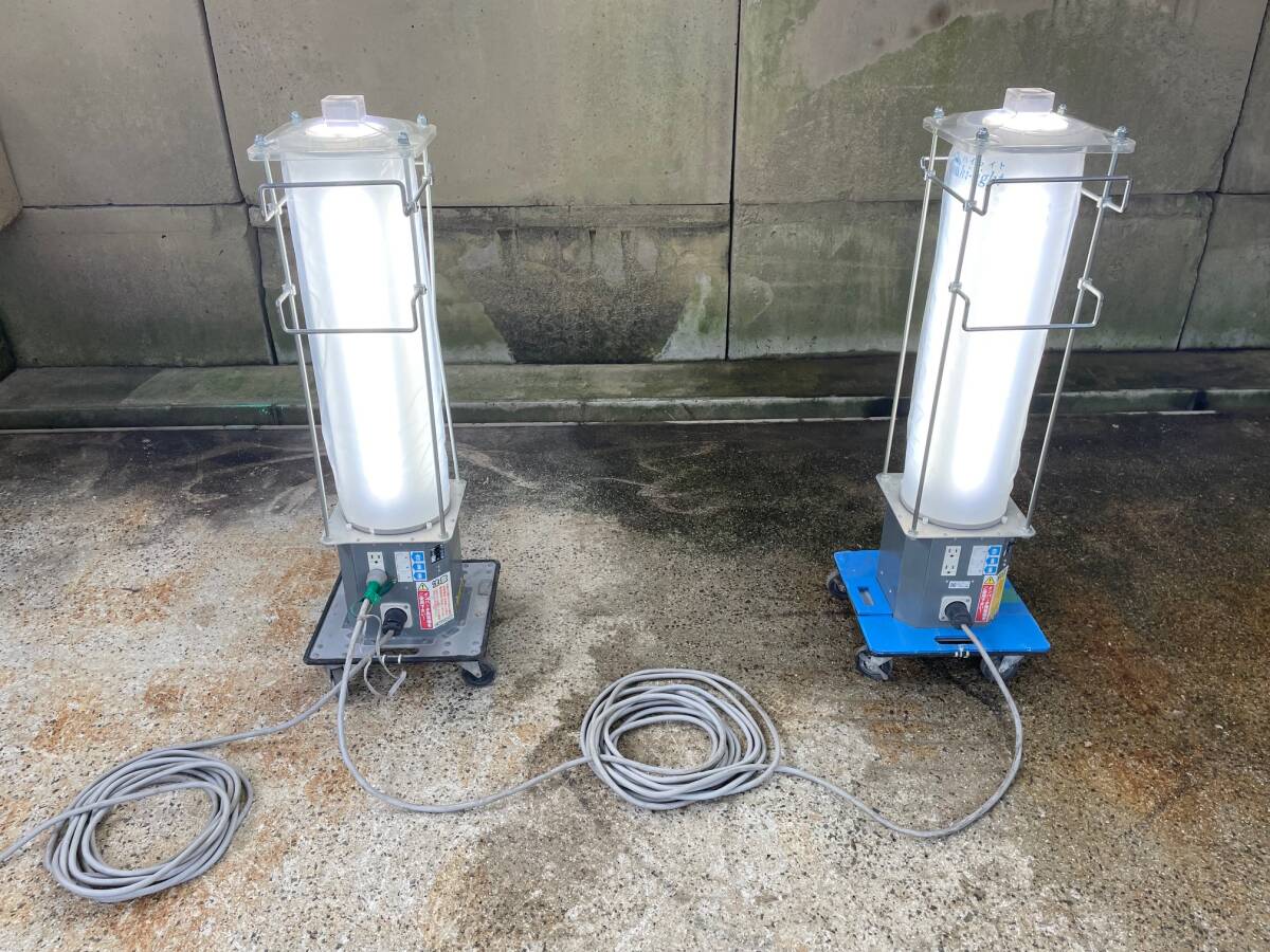 - 福岡発☆【2個セット】 LEDパノラマ投光器 PS05-HL 長谷川製作所 スタンド 内装工事/照明/建築工事/土木工事/道路工事 九州 中古品