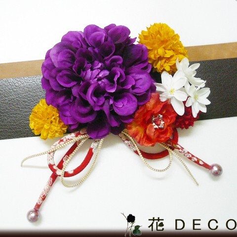 - 髪飾り 花 ダリアpuと金鳳花他 紫 結婚式 振袖 成人式 袴 卒業式 フラワー(3)