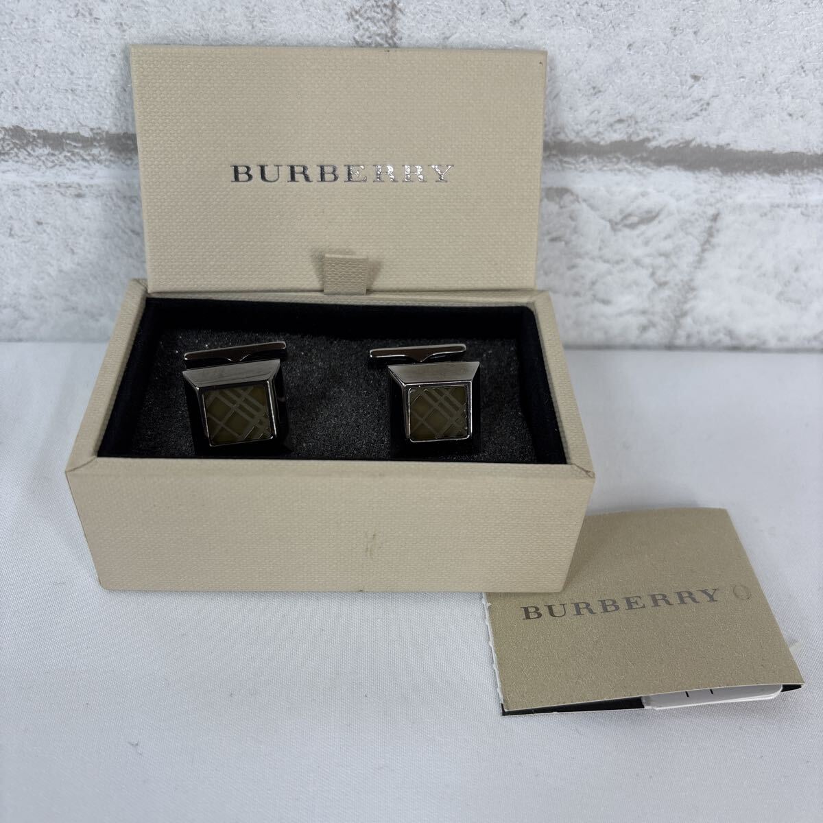 - BURBERRY バーバリー カフリンクス カフスボタン チェック柄 スクエア エナメル 黒×ブラウン系 箱・タグ付き 美品