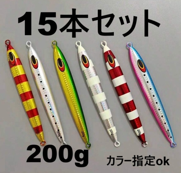 - 送料無料 ジグ 200g 15本セット セミロング タチウオ/青物/万能ルアー タチウオスロージギングゲーム対応セミロング