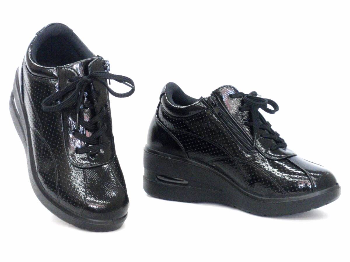 - ニューペペ 1004 ブラック 24.0cm 厚底 エアークッション エナメル パンチングメッシュ ファスナー付き New PePe
