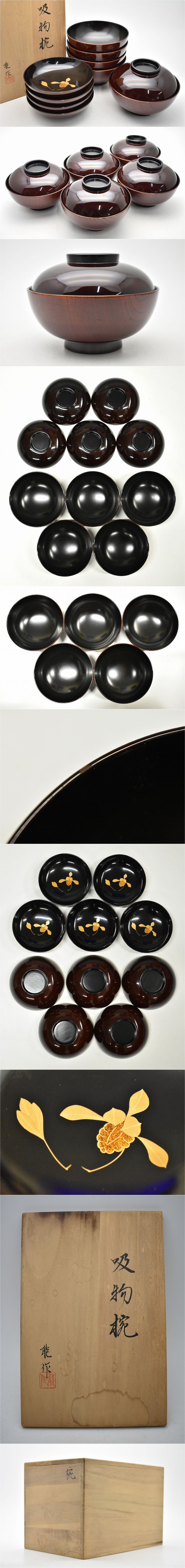 ★商品説明・詳細など★ ■能作 蒔絵 吸物椀 蓋付椀 五客 共箱 漆器 懐石道具