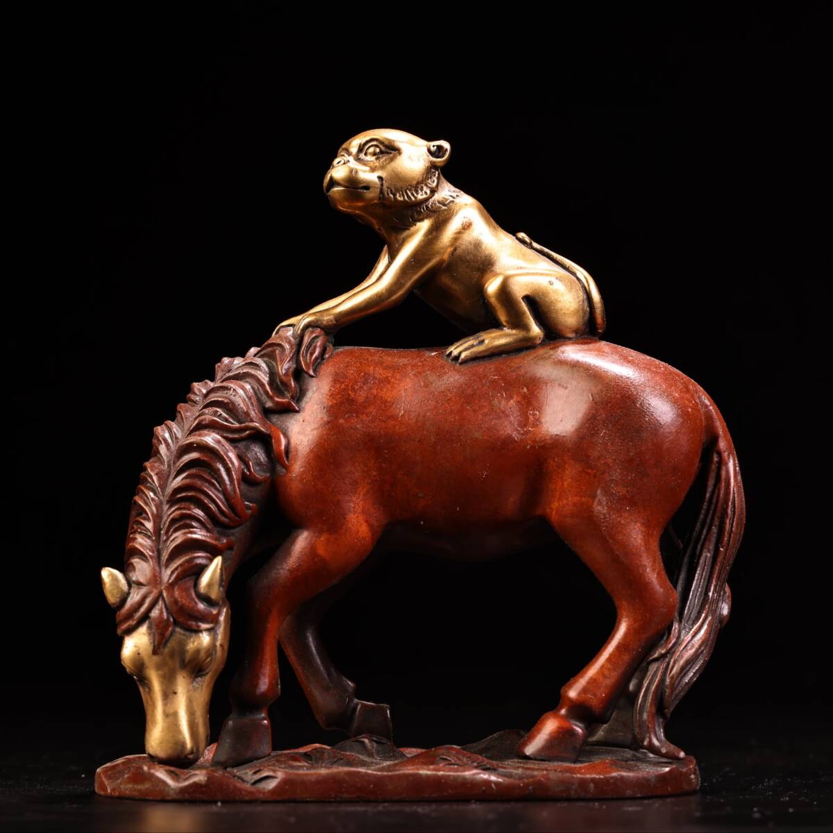 - 『館蔵珍品 銅製 塗金 馬上封侯 置物 賞物』稀少珍蔵品 古賞物 貴重物品 収蔵品 中国古美術 時代物 古董品