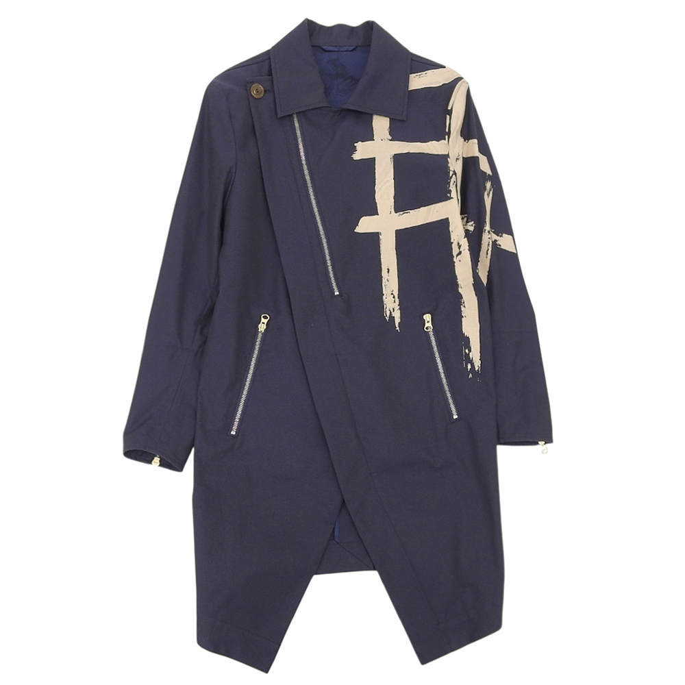 > 超美品 ヴィヴィアンウエストウッド Vivienne Westwood 現行タグ VW-W1-86152 後染めプリント 変形 チェスターコート 44 メンズ