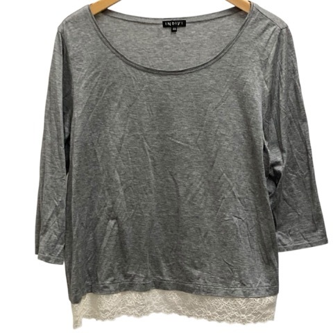 - インディヴィ INDIVI 半袖 カットソー トップス レース 44 グレー レディース