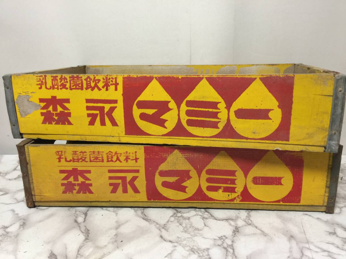 - 昭和レトロ 森永 マミー 木箱 2点セット まとめ 当時物 縦28cm 横53.5cm 高さ10.5cm A7.1