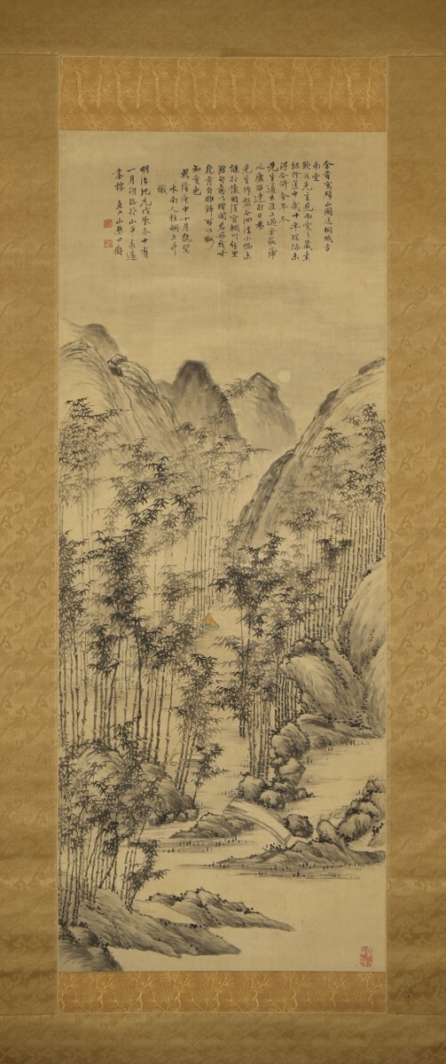 - 【真作 田近竹邨箱書】掛軸「田能村直入 臨程嗣立 山水図」明治元年55歳 南画家 田能村竹田門下 南宗画学校 豊後生 絵画