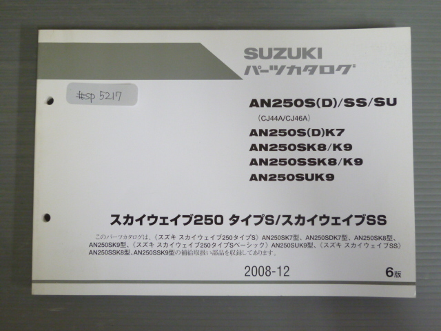- スカイウエイブ250 タイプS SS AN250S SD SS SU CJ44A CJ46A K7 K8 K9 6版 スズキ パーツリスト パーツカタログ 送料無料